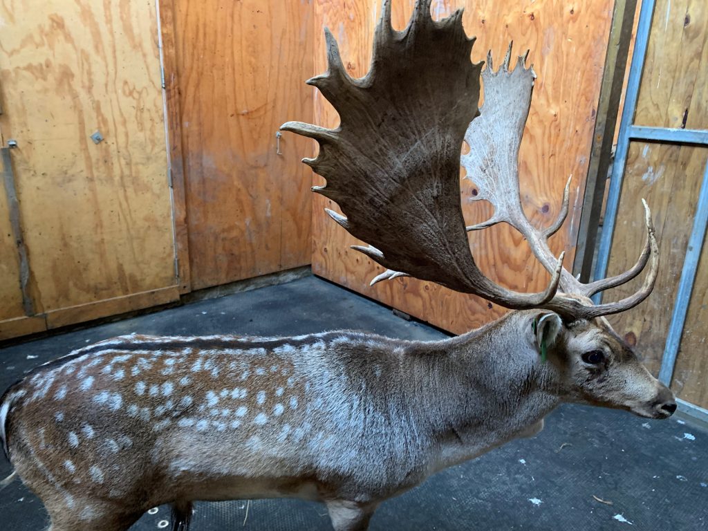 SAKO is a very attractive looking Fallow buck with Hungarian bloodlines. He has lovely looking palms with his better side at 22 2/8 inch circumference. The thing we really like about Sako is his style. Looking front on you can see his palms which are complimented with great spread. The other great aspect is there is no break in his palms. We are very much trying to breed ‘spoon’ type palms with lots of fingers coming off, and he certainly has this.