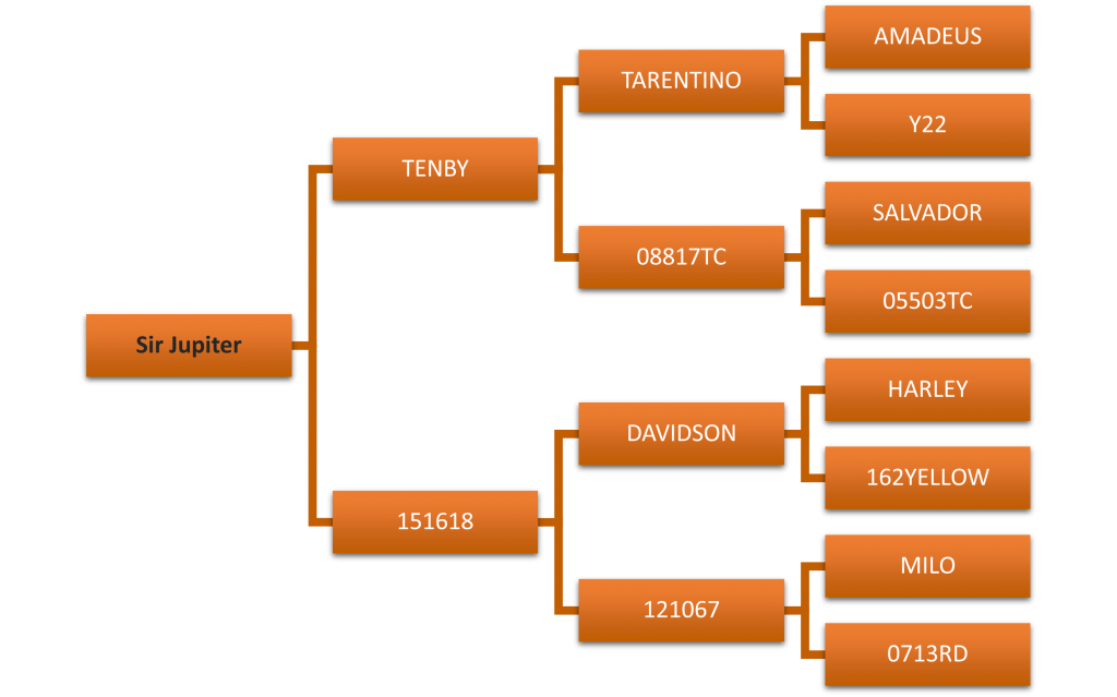 Every sire in this pedigree is a winner. TENBY who scores 710 IOA is a half brother to ROCKAFELLA and DAISY. SALVADOR – 2yr HA Champion 2004. The granddam 05503TC is full sister to DISCOMBE 2yr HA Champion 2008 and HOLY OAK 3yr HA Champion 2009. TARENTINO scored an impressive 756 IOA with 67 inch spread, DAVIDSON scored 751 IOA and won the National Velvet & Trophy Antler Competition 2012 and finally MILO who score 638 IOA with big structure coming from his sire COCO. The dam 151618 was flushed in ET program that year and produced 4 outstanding two year olds last season.